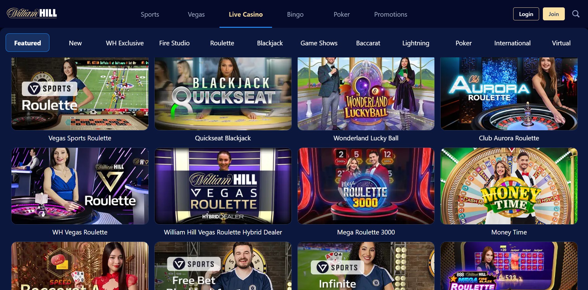 The live casino truly stands out, with multiple Evolution powered tables running throughout the day and stakes suitable for casual players through to high rollers. Alongside blackjack and roulette, players can enjoy Dragon Tiger, Sic Bo, and various poker formats for added variety. Payments are straightforward with clear processing times, and customer support is responsive and knowledgeable, making William Hill a well rounded platform that combines tradition, quality, and modern features.